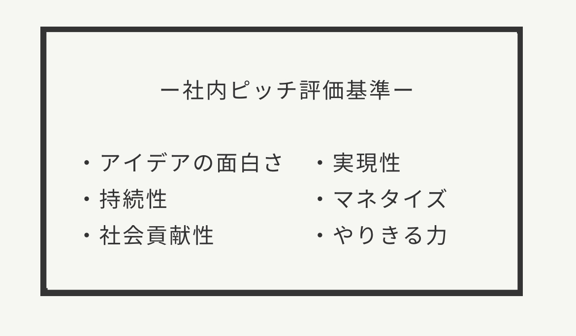 社内ピッチでは、株式会社の代表取締役や、大学教授など、ゲスト審査員をお招きし、審査します。